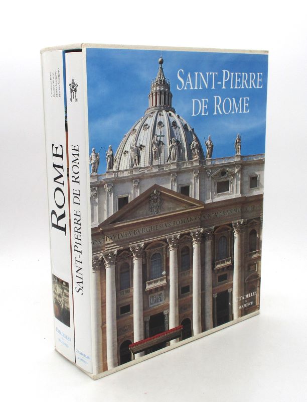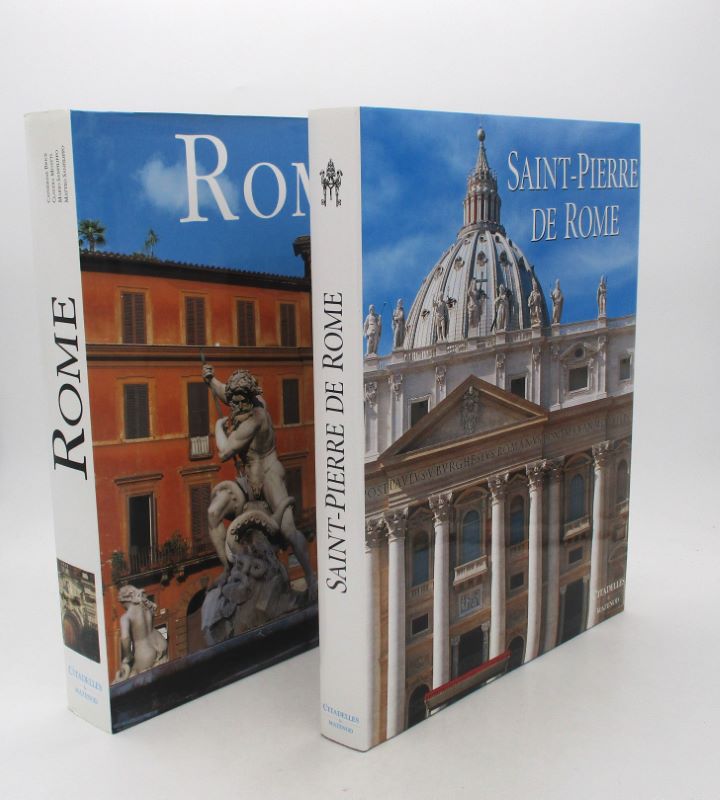 Coffret composé d’une monographie consacrée à la ville de Rome et d’une seconde consacrée à l’église du Vatican.
