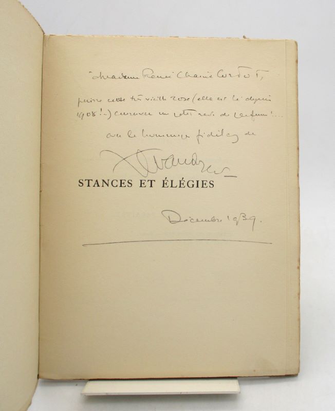 Édition originale de ce recueil. Un des 400 exemplaires sur papier « Feather Weight », second papier après 25 Hollande, celui-ci comporte un envoi autographe soigné de l’auteur à Renée Cortot. Exemplaire non coupé.