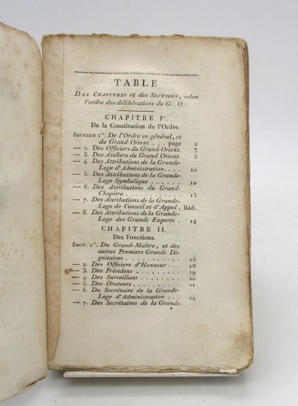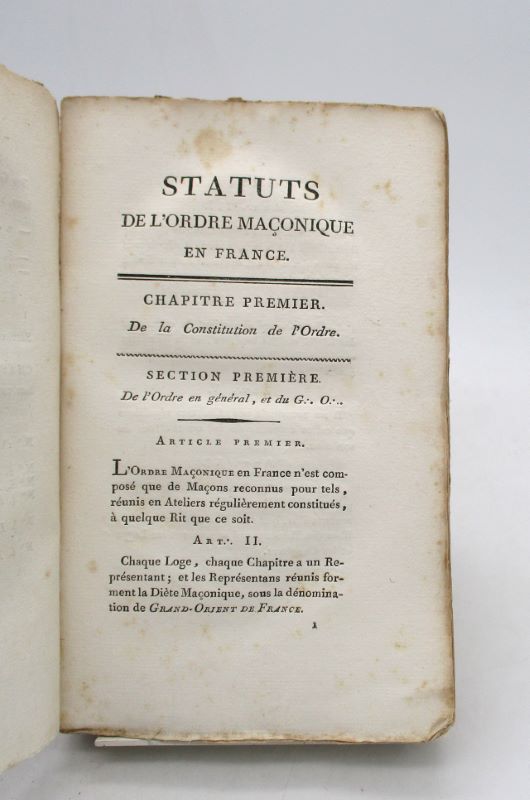 Édition originale de ce recueil des règles et de l’organisation de l’ordre du Grand-Orient. Tel que paru.