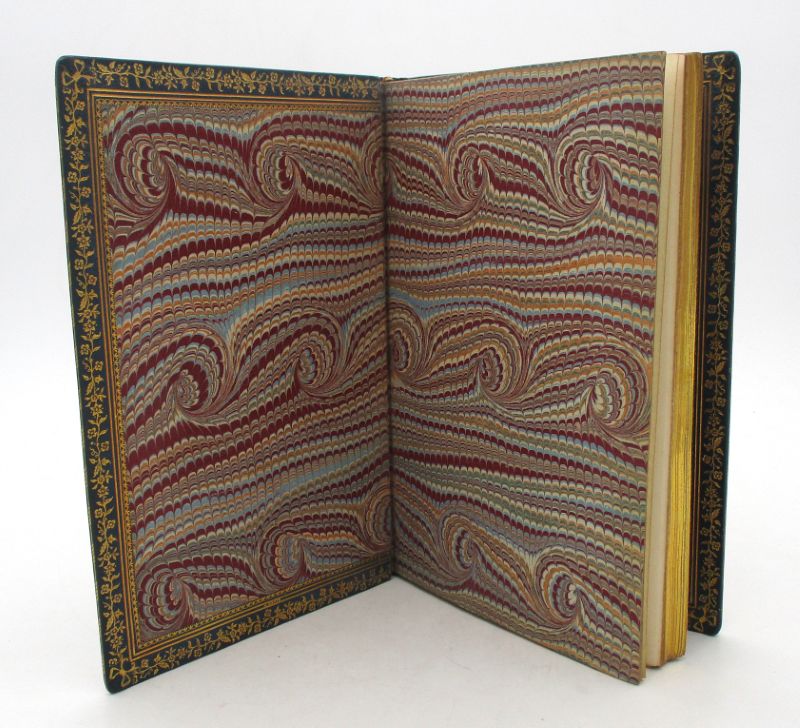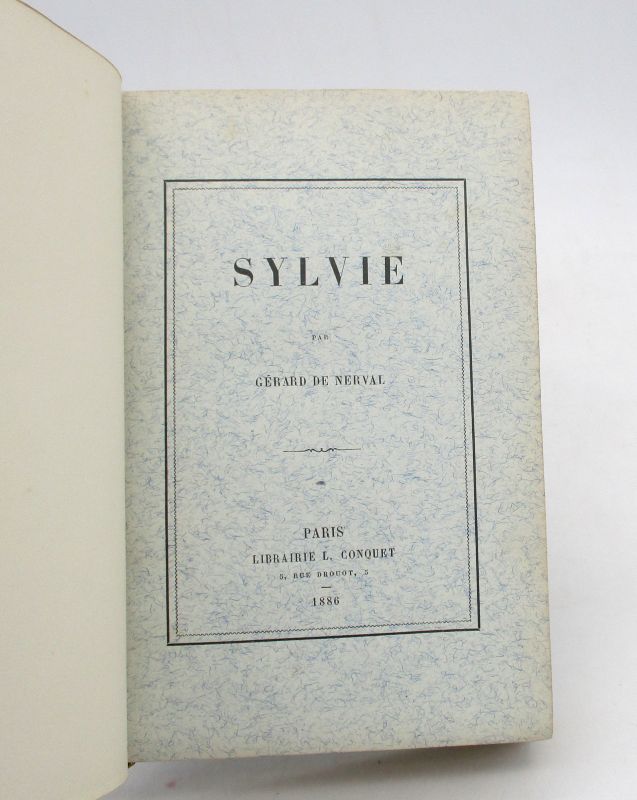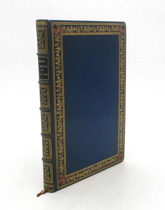 Paris, L. Conquet, 1886. In-8, XXIV-134 pp. 1 pl., maroquin bleu de David, frise dorée mosaïquée de rubans rouges dans les angles en encadrement sur les plats, dos à nerfs orné de caissons dorés, bordure intérieure ornée de dentelle dorée, tranches dorées, couverture conservée.