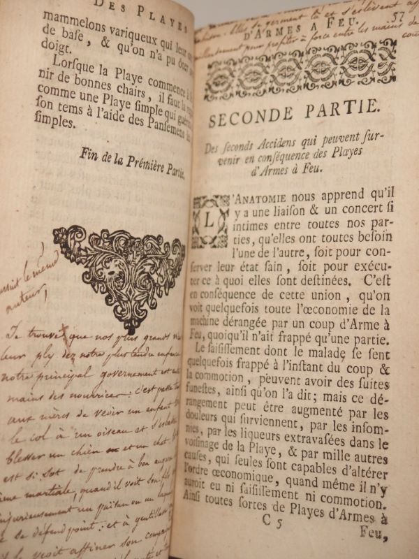 Traité chirurgical concernant les plaies causées par les armes à feu. Note manuscrite p. 56 (concernant le pouvoir des nourrices dans le façonnement des personnalités…).
