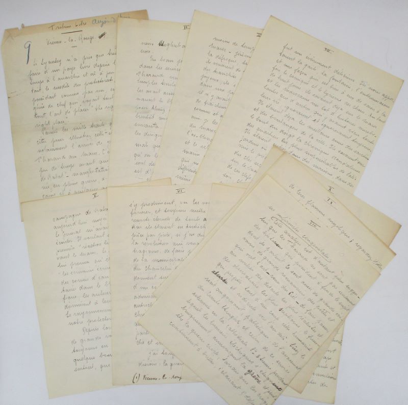 Manuscrit autographe signé ayant servi à l’impression d’une critique de Vienne la Rouge des frères Jean et Jérôme Tharaud, paru chez Plon en 1934. Cet ouvrage s’intéresse à l’Autriche au seuil de la Première Guerre mondiale et aux événements qui y menèrent.